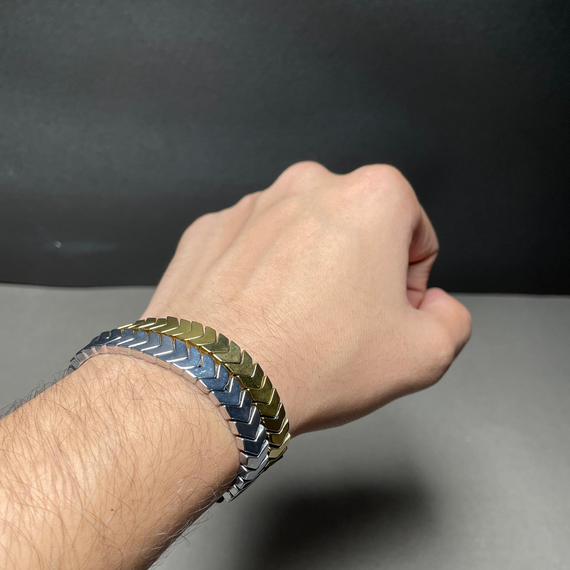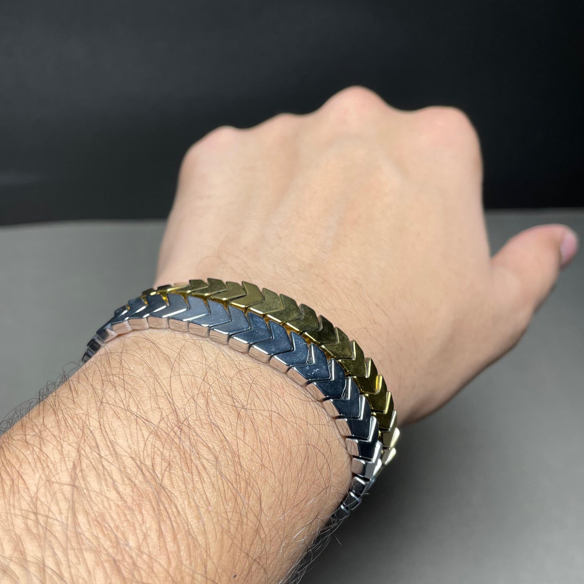 Crafted with high-quality stainless steel, these bracelets are durable, lightweight, and comfortable, making them an ideal choice for daily wear or gifting. The unique chevron design adds a touch of modern sophistication, symbolizing strength, unity, and timeless fashion.
